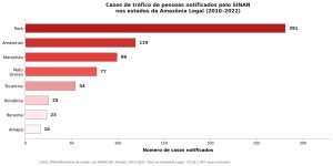 FONTE: Dissertação “O tráfico de pessoas e contrabando de migrantes na região amazônica à luz da segurança humana”. Schoemberger, K. L. R. Programa de Pós-graduação em Relações Internacionais San Tiago Dantas (Unesp, Unicamp, PUC-SP), São Paulo, 2026. Pesquisa qualitativa/descritiva com análise documental de relatórios do MJSP, OIM, UNODC e SMARTLAB, período 2010–2024. Orientadora: Profa. Dra. Marina Gisela Vitelli. Financiamento: CAPES (processo nº 88887.877054/2023-00). Licença: acadêmica.