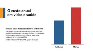 A exposição ao calor extremo é responsável por quase 23 milhões de acidentes de trabalho e 19 mil mortes todos os anos, revelando uma crise de segurança ocupacional em escala global.