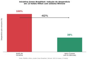 Em 2023, uma parceria entre o PNUMA, a Hilton e a Winnow resultou no projeto Green Breakfast. Em quatro meses, os 13 hotéis participantes reduziram o desperdício pós-consumo em 62%.