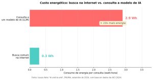 Enquanto promete cortar emissões no setor alimentar, a IA carrega sua própria pegada ecológica. Uma consulta a um modelo de linguagem consome 2,9 watt-hora de eletricidade — quase dez vezes mais do que uma busca convencional na internet, segundo a Issues Note publicada pelo PNUMA em setembro de 2024. A demanda global de água associada à IA pode chegar a 6,6 bilhões de metros cúbicos em 2027, volume que supera metade do consumo anual do Reino Unido.