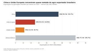 A cadeia bovina é a mais pressionada. O padrão manda contabilizar metano entérico, manejo de dejetos, emissões de pastagens, solos manejados e as áreas usadas na produção da ração consumida ao longo do ciclo dos animais. No caso da soja, o reporte de mudança de uso da terra e a rastreabilidade do escopo 3 são obrigatórios. Café, cacau, borracha e demais cadeias voltadas à União Europeia, que absorveu US$ 25,2 bilhões das exportações do agro em 2025, também entram na mira.